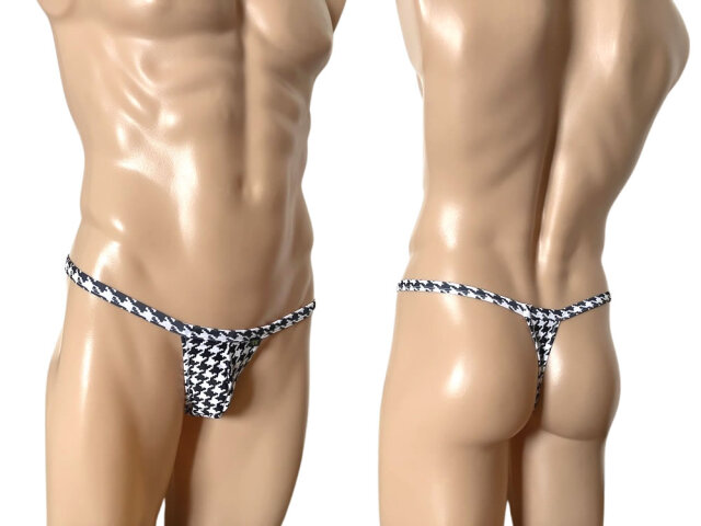 ボディウェアーのメンズTバック。ギンガムチェック柄をプリントした2ウェイスパンデックス素材。スポーティーなウェストバインダー&股下細めでスタイリッシュなデザイン。サポーターとしてもおススメ。フロントフルシーム。■サイズ:M(ウェスト76~84cm)■平置き寸法(フロント部分):股上13cm、横幅9cm■素材:ポリエステル80%、ポリウレタン20% ■生地の伸び:普通、厚さ:普通