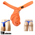 TMコレクションのメンズTバック。ストライクスキン(つるっとしていてさらっと滑らかな柔らかいスペシャルな素材)を使用したビキニ。フロントフルシームのTフロントデザインでしっかり穿けるパターン。普段履きにもおススメの1枚です! ■サイズ:M(ウェスト76~84cm) ■平置き寸法:股上12cm、フロント部分幅9cm ■素材:ナイロン88% ポリウレタン12% ■生地の伸び:非常に伸びる、厚さ:非常に薄い