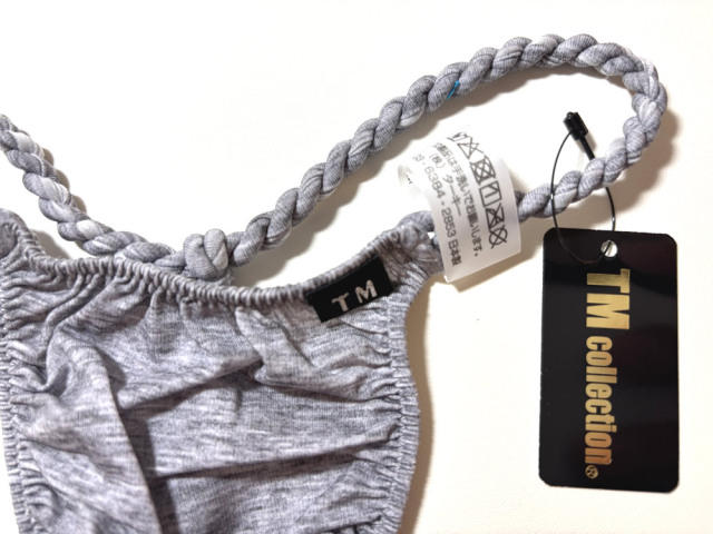 TMコレクションのメンズGストリング。ストライクスキン(つるっとしていてさらっと滑らかな柔らかいスペシャルな素材)を使用したこだわりのねじりふんどし風ビキニ。ウエスト、バックはねじってありますが、とても柔らかく伸びがあるのでしっくり馴染みます!フロントノーシーム。■サイズ:M(ウェスト76~84cm)、平置き寸法:股上約10cm、幅約10cm■素材:ナイロン88% ポリウレタン12%■生地の伸び:非常に伸びる、厚さ:非常に薄い