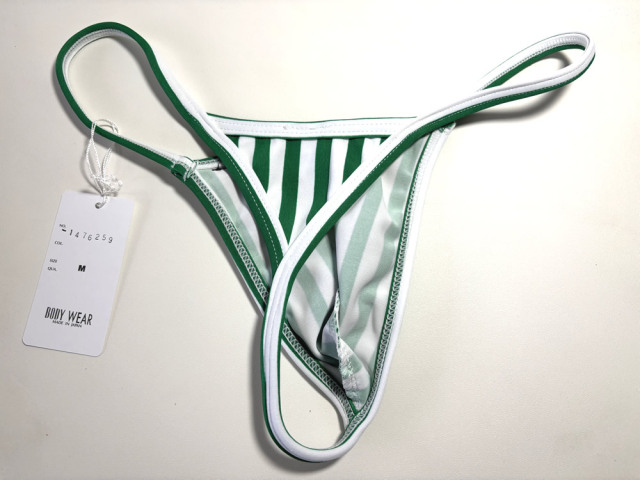 | 製品名: | BODYWEAR メンズビキニ グリーンストライプ トライアングルバック Gストリング 1476259 |
