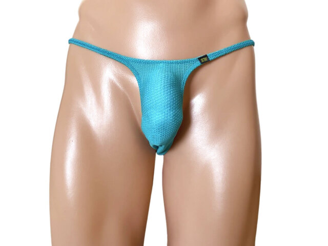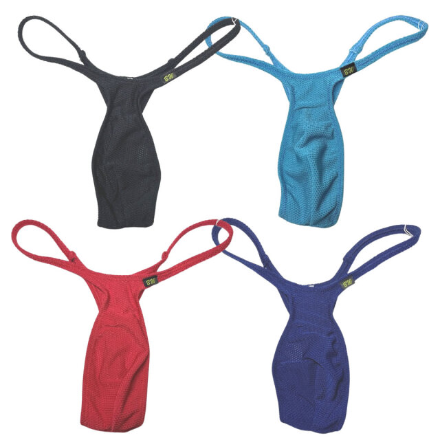 ボディウェアーのメンズTバック。旭化成のスポーツ用インナー素材「エラクションPROメッシュタイプ」を採用したビキニ。速乾性、吸湿性、伸縮性に優れ快適な履き心地。さらに、優れた伸縮特性が身体のあらゆる動きに追随する高次元ストレッチファブリックで方向性を自在にコントロールする旭化成独自のダイアモンド構造組織によりパフォーマンスを的確にサポート。フロントハーフシーム、サイド細めのTフロント。ぎりぎりアウトラインのハイレグ カットです。 ■サイズ:M(ウェスト76~84cm)■平置き寸法(フロント部分):股上15cm、横幅10cm■素材:ポリエステル80%、ポリウレタン20% ■生地の伸び:非常に伸びる、厚さ:非常に薄い