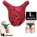 TMコレクションのLサイズメンズTバック。シャイニースムース(NewT2M2の様な滑らかでもっちり感のある素材に光沢をプラス)を使用した穿き心地が良く格好の良いビキニ。基本的には普段使いに適したスタイルですがシャープさもあり、使える一枚に仕上がっています!フロントノーシーム 股下縫い目なし。 ■サイズ:L(ウェスト84~94cm) ■平置き寸法:股上約14cm、フロント部分幅約11cm ■素材:ナイロン80% ポリウレタン20% ■生地の伸び:非常に伸びる、厚さ:非常に薄い
