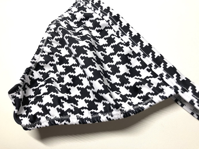 ボディウェアーのメンズハーフバック。ギンガムチェック柄をプリントした2ウェイスパンデックス素材。スポーティーなウェストバインダー&股下細めでスタイリッシュなデザイン。サポーターとしてもおススメ。フロントフルシーム。■サイズ:M(ウェスト76~84cm)■平置き寸法(フロント部分):股上13cm、横幅9cm■素材:ポリエステル80%、ポリウレタン20% ■生地の伸び:普通、厚さ:普通