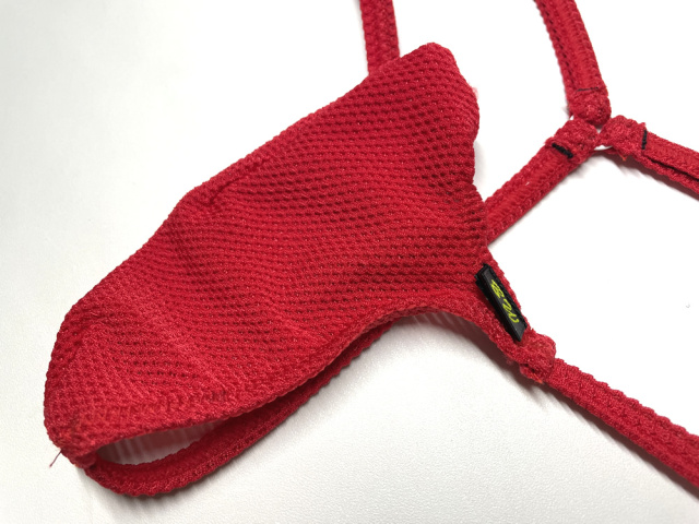 ボディウェアーのメンズGストリング。旭化成のスポーツ用インナー素材「エラクションPROメッシュタイプ」を採用したビキニ。速乾性、吸湿性、伸縮性に優れ快適な履き心地。さらに、優れた伸縮特性が身体のあらゆる動きに追随する高次元ストレッチファブリックで方向性を自在にコントロールする旭化成独自のダイアモンド構造組織によりパフォーマンスを的確にサポート。Tフロントでありながらしっかり穿ける上向きデザインです! ■サイズ:M(ウェスト76~84cm)■平置き寸法(フロント部分):股上13cm、横幅10cm■素材:ポリエステル80%、ポリウレタン20% ■生地の伸び:非常に伸びる、厚さ:非常に薄い