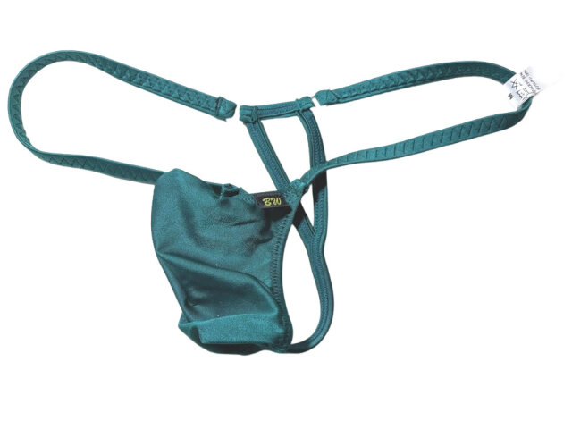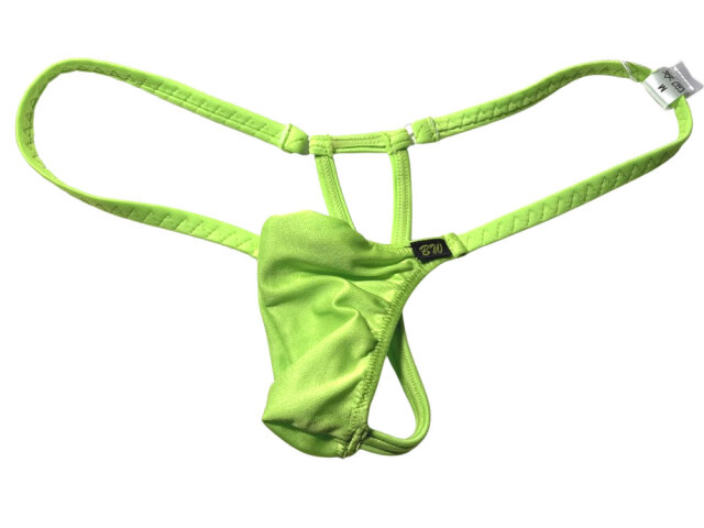 ボディウェアーのメンズGストリング。東レの特殊断面ポリエステル(吸水速乾性)と旭化成ロイカの消臭機能タイプを使用した高機能2way素材トリノクールCF。従来の上向きTフロントにバックをトライアングルにしたファッショナブルなパターン。■サイズ:M(ウェスト76~84cm)■平置き寸法(フロント部分):股上13cm、横幅10cm■素材:ポリエステル82%、ポリウレタン18% ■生地の伸び:非常に伸びる、厚さ:薄い