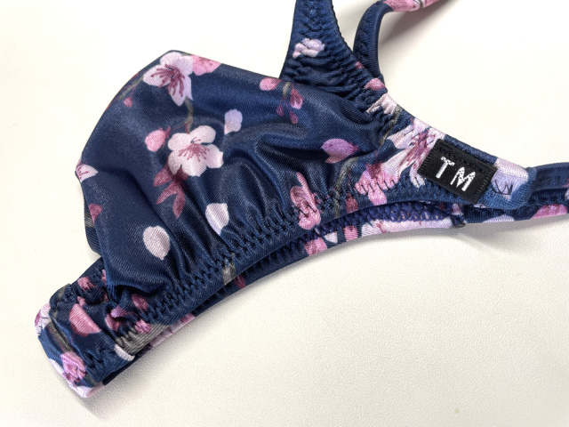 TMコレクションのメンズサスペンダー。YKS(柔らかくて光沢が綺麗なサテン調の2wayストレッチ素材)のプリント生地を使用したシャープカット&もっこりフロントのサスペンダーTバックビキニ。シャープなカットとしっかり収まるデザインです。フロントフルシーム。 ■サイズ:M(ウェスト76~84cm) ■平置き寸法:股上12cm、フロント部分幅9cm ■素材:ポリエステル80% ポリウレタン20% ■生地の伸び:非常に伸びる、厚さ:薄い