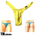 TMコレクションのメンズTバック。ストライクスキン(つるっとしていてさらっと滑らかな柔らかいスペシャルな素材)を使用したTバックビキニ。ツノ型(ウエストにカーブをもたせたゆとりのあるパターン)で、ハイレグ、ローレグ自在)のセクシーパターンです。フロントノーシーム。■サイズ:M(ウェスト76~84cm)、平置き寸法:股上約12cm、幅約10cm■素材:ナイロン88% ポリウレタン12%■生地の伸び:非常に伸びる、厚さ:非常に薄い