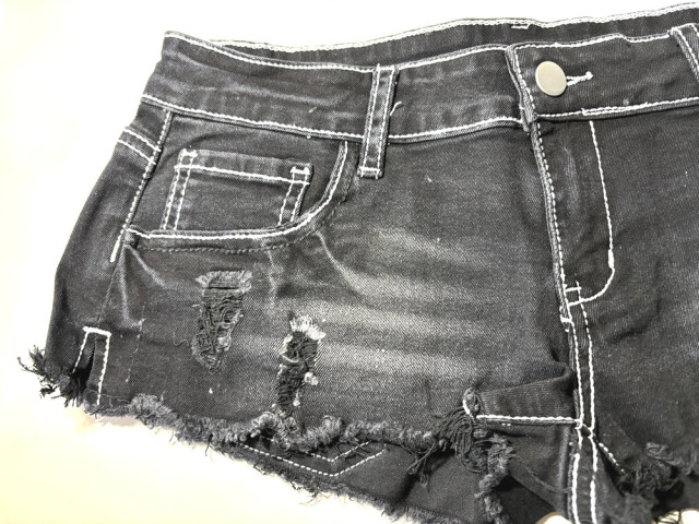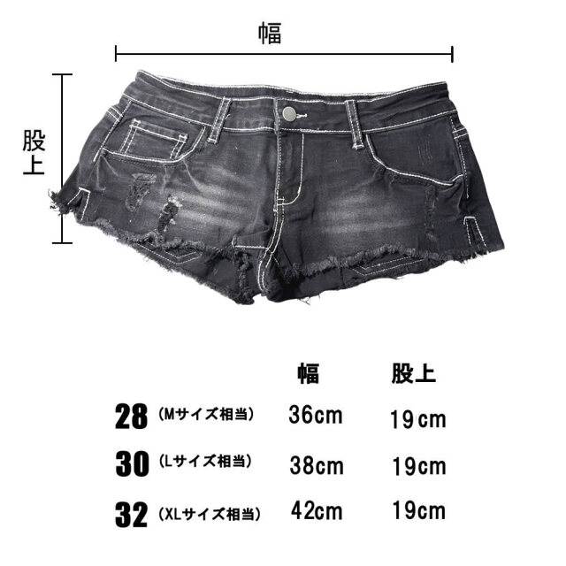 | 製品名: | ホットパンツ ストレッチデニム ローライズ BLACK×WHITEステッチ ダメージ加工&サイドスリット hp1028 |